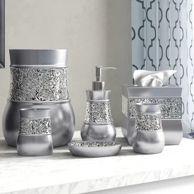 - Decorative Look: With An Enchanting Mix Of Eye-Catching Silver Gray Color And Crackled Mosaic Glass The Bling Bathroom Accessory Set Complements Any Modern Bathroom And Will Definitely Wow Your Guests!