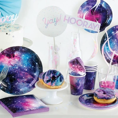 These Galaxy Party Beverage Napkins are the perfect addition to your space party theme. These 5” party napkins display a beautiful picture of the galaxy with different colors and bright stars. Sold in packs of 48, these disposable napkins perfectly accentuate other Galaxy Party party supplies. The Galaxy Party Beverage Napkins makes set up easy, and clean up a breeze!