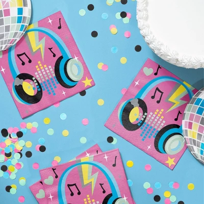 - Birthday Beats Disco Party Plates and Napkins Set serves 16 guests and consists of 48 pieces