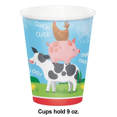 Each Farm Animals Birthday Party Supplies Kit contains: 8 Farm Animals Paper Plates (9″), 8 Farm Animals Dessert Plates (7”), 16 Farm Animals Napkins (6.5”), 16 Farm Animals Beverage Napkins (5”), 1 Farm Animals Paper Tablecloth (102” x 54”), and 8 Farm Animals Paper Cups (9oz). Create a memorable birthday party for your child with help from the Farm Animals Birthday Party Supplies Kit. This kit has all the paper plates and napkins you need to serve a meal to a gathering of 8 people. The party supplies feature cartoon farm animals and tractors with a green, red, pink, brown, and white theme. Throw a wonderful birthday party with help from this kit!