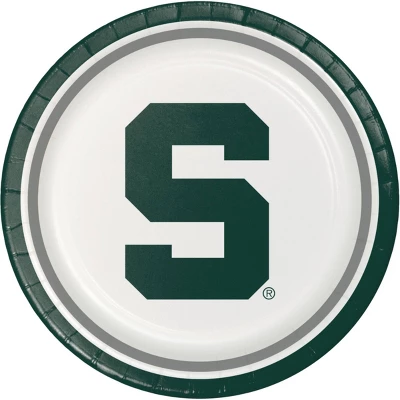 Each Michigan State University Tailgating Kit contains: 8 Michigan State University Paper Plates, 20 Michigan State University Napkins, 8 Michigan State University Plastic Cups and 1 Michigan State Plastic Tablecover. Use these Spartans plates, napkins and cups to show love for your team. This Michigan State University tailgating kit lets you party in style while you wait for the big game with all of your fellow Spartans fans. Go Sparty!