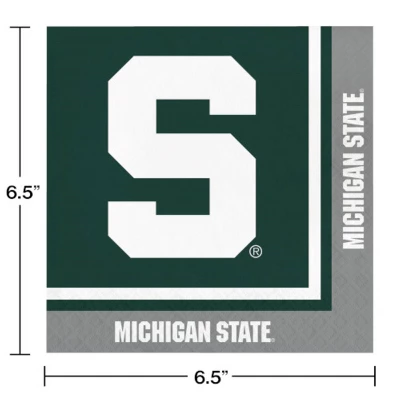 As the Spartans are winning the game, you’ll be winning the tailgate with the Michigan State University Napkins. These 6.5” luncheon napkins feature the MSU logo and school colors and will fire up fans before the big game. Sold in packages of 60, set your table with these napkins and enjoy another Spartans victory.