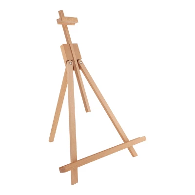 - LIGHTWeight: This lightweigh table easel is only 1.16lbs and Made Of Natural beech Wood and brass plated hardware. Folds down in seconds to a compact 3.25″ x 3″ x 20″. At max height it is 29″ and can hold a Canvas, artwork, panel, or pad at 27″ high. The length of the bottom Canvas rest is 15.75″ When unfolded it takes up only 13″ x 14.5″ on a table top and the back leg adjusts for various angles.