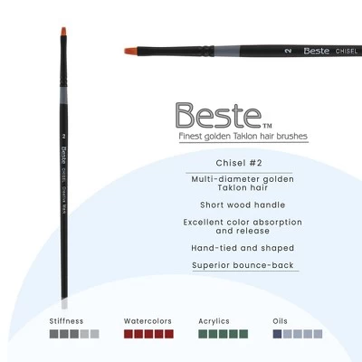 Creative Mark Beste Golden Taklon Chisel #0 – 2 Pack Artist Brush, Professional Watercolor Brushes, For Acrylic Painting, Short Handle, Sharp Edges,