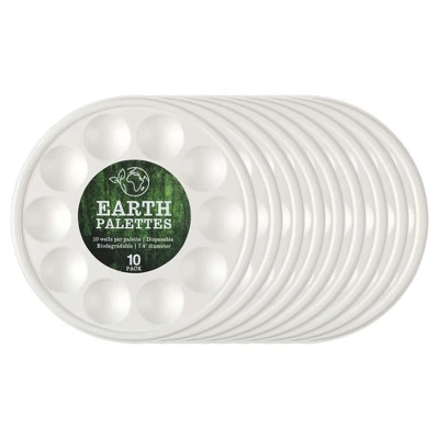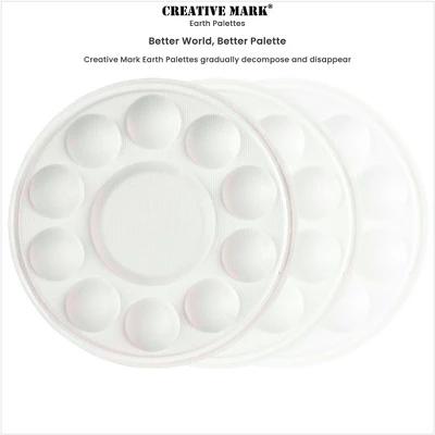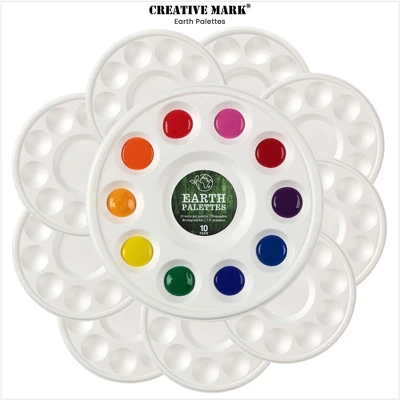 Introducing the Creative Mark Disposable Biodegradable Paint Palette, a revolutionary solution for artists seeking convenience and environmental responsibility. Each pack includes 10 disposable palettes. With a 7-3/8″ diameter, these palettes provide ample space for mixing and holding various paint types, including tempera, acrylic, or oil. The central mixing area, measuring 2-1/2″ in diameter, is perfectly complemented by ten 1-5/16″ diameter paint wells per palette, allowing for diverse color mixing and creativity. These paint dish trays are an eco-conscious alternative to plastic palettes. Constructed from biodegradable paper, after use, simply dispose of them, and they will gradually decompose, leaving only dried paint residue. This makes them an excellent choice for artists who are mindful of their ecological footprint. When used with non-toxic paint, they are compostable, further enhancing their sustainability credentials.Creative Mark’s paint trays for acrylic paint are designed to hold paint for hours without becoming soggy, ensuring that your colors remain vibrant and usable throughout your painting session. The easy clean-up process eliminates the need for washing, saving you precious time and effort, while facilitating a seamless transition from creation to disposal.These palettes for painting are not only functional but also affordable, making them a preferred choice for artists who require reliable painting palettes at an economical price. Whether you’re a seasoned artist or a beginner, the Creative Mark Disposable Biodegradable Paint Palette ensures that your focus remains on your art, not the clean-up. The thoughtful design maximizes creativity while minimizing the environmental impact, aligning perfectly with the needs of the modern, eco-conscious artist. Embrace the future of painting with these innovative, disposable paint palettes and let your creativity flow unhindered.
