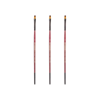 Introducing the Ebony Splendor Short-Handled Synthetic Brush by Creative Mark, meticulously crafted to meet the discerning needs of artists who require precision and durability. This exceptional brush, is designed with Teijin multi-filament hair, offering the luxurious feel, look, and performance akin to fine red sable brushes. Ideal for both professional and aspiring artists, this brush excels in a variety of applications, from watercolor to acrylics and oils.The Ebony Splendor brush features a perfect shape for glazing, washes, and all prima priming, making it a versatile tool in your artistic arsenal. The fine yet firm filament hairs are cupped into anodized plated black seamless ferrules, ensuring a secure and durable bond. The brush is finished with a rich red wood handle, coated with a super-strong Dura-Last lacquer that provides a comfortable grip and long-lasting finish.Crafted by hand and rigorously inspected, the Ebony Splendor brush exemplifies artistry and craftsmanship. Its superb edges and split-proof tips ensure precise and consistent strokes, allowing for meticulous detail and smooth transitions. As an animal hair alternative, this synthetic brush offers the same luxury feel comparable to fine European sable brushes, making it a perfect choice for those who prefer synthetic materials without compromising on performance.The Ebony Splendor Short-Handled Synthetic Brush is available in various shapes, including brights, rounds, and filberts, catering to different artistic techniques and styles. Whether you are using it as a watercolor brush, an acrylic paint brush or integrating it with your collection of watercolor sable brushes, this brush delivers outstanding results.Elevate your artistic expression with the Ebony Splendor Short-Handled Synthetic Brush by Creative Mark, where tradition meets innovation for unparalleled performance in every stroke.
