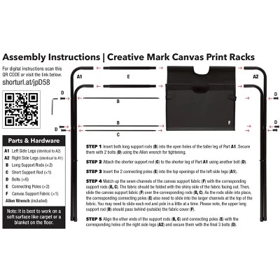These Canvas Print Racks are a Jerry’s best seller product! They are a must-have when selling or displaying your art in galleries, shops and art shows! Their 1″ thick, aluminum body makes them very lightweight and portable. The black canvas basin is strong and professional-looking. All four legs of these Canvas Print Racks are completed with rubber feet for added stability, and to ensure that they won’t scuff or scratch the floor they’re sitting on. Some assembly is required.