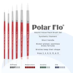 - Materials: Polar Flo watercolor brushes are crafted with white synthetic hair, this watercolor brush delivers beautiful, crisp results every time; Nickel-plated seamless brass ferrules help these professional paint brushes for watercolor painting and other liquid mediums keep their shape