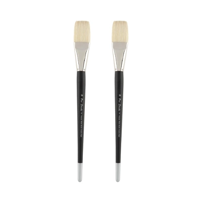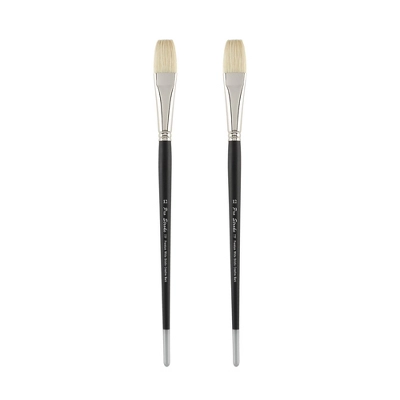 - Versatile Hog Hair Paint Brushes: The Creative Mark Pro Stroke Premium White Bristle Artist Paint Brush offers an array of options including rounds, flats, brights, filberts, and long filberts, in sizes up to 24; The size 24 hog brush, which in a flat, bright, or filbert spans 2 1/2″ width, and is capable of laying down a 3″ wide brush stroke