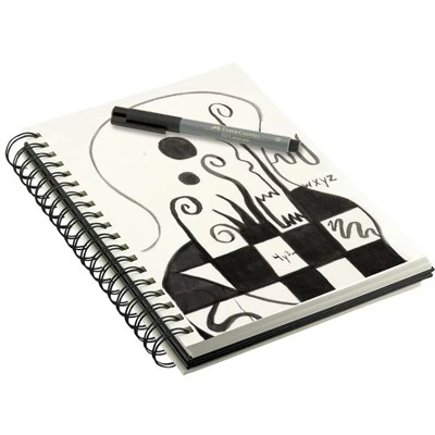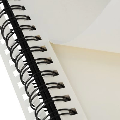 The perfect field drawing journal. The black embossed covers provide a sturdy support for sketching outdoors and has micro perforated edges for easy removal. Features a super sturdy, black double wire spiral binding. Each sketch book has 80 sheets of light cream colored, acid free, 70 lb.(110 gsm) paper with a fine, even surface texture. Perfect for classes or quick sketches and studies in graphite, colored pencil, Conté crayon, technical pens, and more.