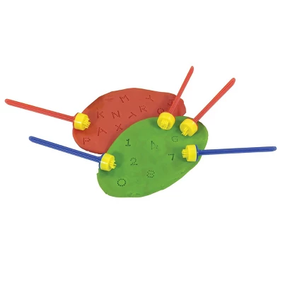 Stamp out vocabulary words or decorate clay and dough art with these Alphabet and Number Dough Stampers. Encourage children to practice spelling out their name or creating a pattern. If they make a mistake, they can simply roll the stamping material and restart the process. These stampers work well with paint too. This set promotes creativity and dexterity. Each plastic stamper is 4.75″ long with a .75″ round stamping head. 36 plastic stampers: 26 alphabet and 10 number stampers 0-9.