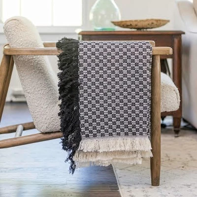 - Embrace coziness with our woven fringe throw, measuring 46×67 inches.