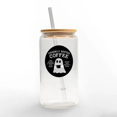 Add a spooky touch to your drinkware this Halloween season with this festive glass can cup. Designed and printed in the United States on quality materials, this is an item you’re sure to love. Enjoy your favorite beverage in this glass can cup with a bamboo top and glass straw designed in the USA.16-ounce capacityDimensions: 3x3x5.8Reuseable glass can cup with a bamboo top and a trendy glass strawGreat for daily use of iced beveragesHand wash only