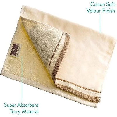 - Terry Velour Towel: Terry has absorbent loops on the inside and a velvety smooth velour cotton on the outside.