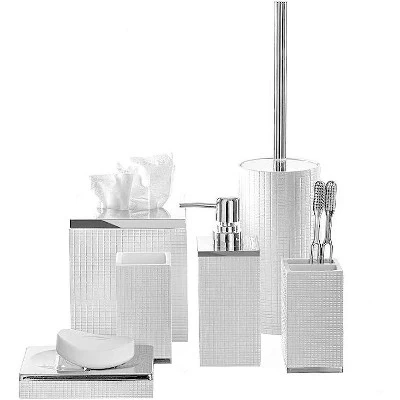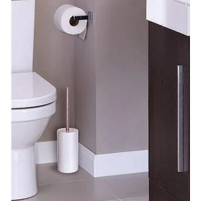 ACCENTUATE YOUR BATHROOM WITH CONTEMPORARY ELEGANCEMake a StatementClean and classy, our Estella collection stands out with timeless elegance. With a touchof white, a flash of silver, and a bit of texture to bring the beauty to life, it’s the perfectchoice for anyone looking for contemporary décor that will keep inspiring complimentsfor years. You’ll love the sleek and stylish look of this decorative toilet brush holder, withits space-friendly design that matches any bath. Place it in the guest bathroom or masterbath and give it an instant facelift.Hygienic StorageKeep the actual toilet cleaning brush out of sight with effortless ease. We’ve thoughtfullydesigned our loo brush with a lid attached to the handle. This means you get to coverand uncover the brush without ever having to come into contact with the container.And you’ll never have to worry about rust ruining the look either. Made usingcorrosion-proof polyresin, this fancy toilet brush remains elegant through it all.Here’s why you’ll love this loo brush:- Touch of white and silver matches any décor.- Measures 15.25” x 3.5” to easily fit most bathrooms.- Designed with heavy-duty bristles for a thorough clean.- Thoughtfully designed lid and container make for hygienic storage.- Heavy-duty polyresin never rusts or tarnishes.- Backed by a no-hassle, 100% money-back guarantee.Upgrade your bathroom with a toilet brush that doubles as elegant décor!