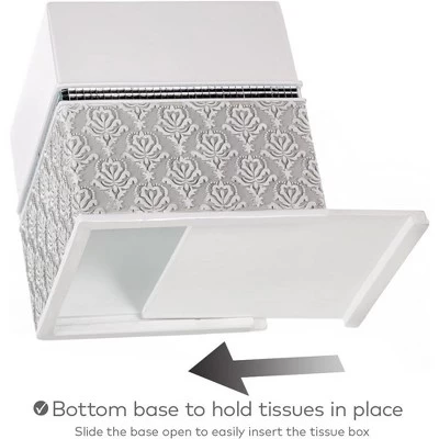 - 6 Piece Bathroom Accessory Set: The Mirror Damask Complete Bathroom Set Includes a Soap Dispenser, Toothbrush Holder, Tumbler, Soap Dish, Tissue Cover & Wastebasket.