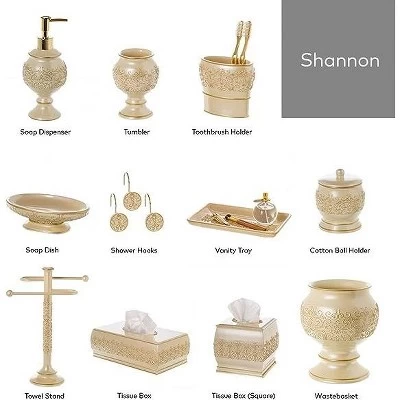 - Decorate Your Bath: With An Enchanting Mix Of Beige And Gold Color And An Eye-Catching Shannon Relief Pattern, This Bathroom Sets Accessories Complement Any Modern Bathroom That Will Wow Your Guests.