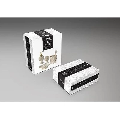 - Full Bathroom Sets: These 4-piece Bathroom decor Sets Accessories complete, Include: A decorative Lotion Dispenser, Tumbler cup, Soap Dish And Toothbrush Holder.
