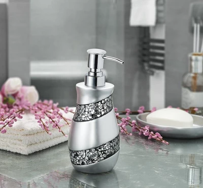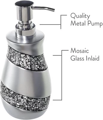 All Silver Mosaic Accessories Are Made From High-quality Resin That Weathers Humid Conditions Of Your Bathroom Without The Risk Of Rust.Touch Of Class: Our Hand Soap Dispenser For Bathroom Sports Captivating Silver Color With Beautiful High Class Mosaic Glass Pattern, And Elegant Shape To Spruce Up Your Bathroom’s Decor.The Soap Dispenser Comes With A Metal Pump For Reliably Smooth Dispensing And Extra Durability.
