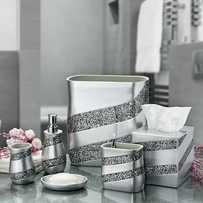 Give Your Bathroom an Impressively Exquisite TouchElegance in ActionWhether your bathroom has a contemporary look, a rustic feel, or more of a traditional décor, our Silver Mosaicbath accessories complement it with color, shape, and detailing that adds an instant splash of class. You’ll lovethe rich silver-gray look that blends into any color scheme, the soothing gentle curves, and the crackled glassdetailing that creates exquisite drama and eye-catching dance of light. Collect the bath accessories piece bypiece to end up with a bathroom that is not only functional but an elegant sight to behold.All about QualityUnlike metal that easily rusts or regular plastic that quickly cracks, these bath accessories are made using a high-graderesin that ensures maximum durability. All through the daily use and humid conditions of your bathroom, these beautifulpieces will remain in eye-catching condition for years to come. And we’ve carefully sized each accessory to ensure itsaves on valuable space while still exuding a captivating presence. Experience a hard-to-find marriage between superiorquality and great functionality.Here’s why you’ll love the Silver Mosaic collection:- Made using high-grade resin to ensure maximum durability.- Beautiful curves create a timeless look to suit any bath.- The silver-gray hue beautifully blends into any color scheme.- Perfectly sized to fit even tight-spaced bathrooms.- Unique design makes it a great gift for both men and women.Treat yourself or that loved one to the most beautiful bath accessories that bring on the functionality withoutskimping on quality. Click ‘Add to Cart’ now!