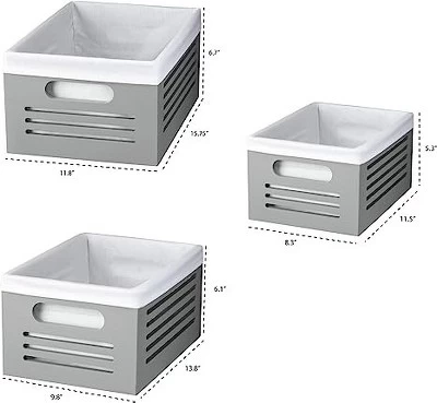 Creative Scents Wooden Storage Gray Bins – Set Of 3 (Small, Medium, And Large)