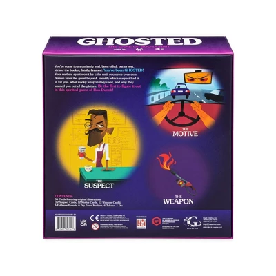 You’ve come to an untimely end, been offed, put to rest, kicked the bucket, fatally finished. You’ve been GHOSTED! Your restless spirit won’t be calm until you solve your own demise from the great beyond. Identify which suspect had it in for you, what wacky weapon they used, and why they wanted you out of the picture. Be the first to figure it out in this spirited game of Boo-Dunnit!