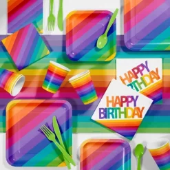 Creative Converting 24ct Rainbow Cake Square Dessert Plates Pink
